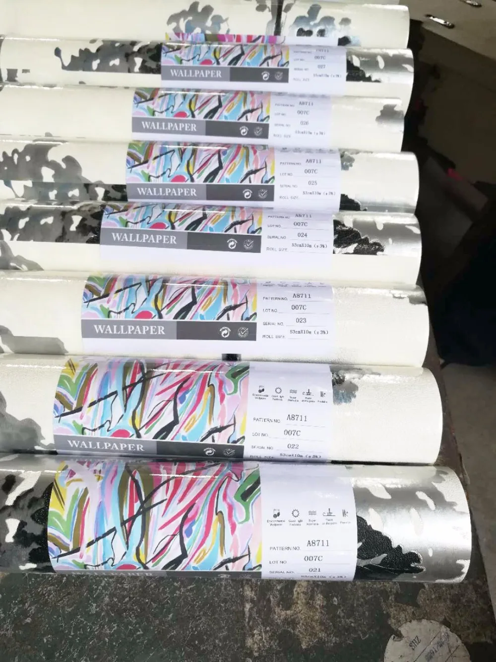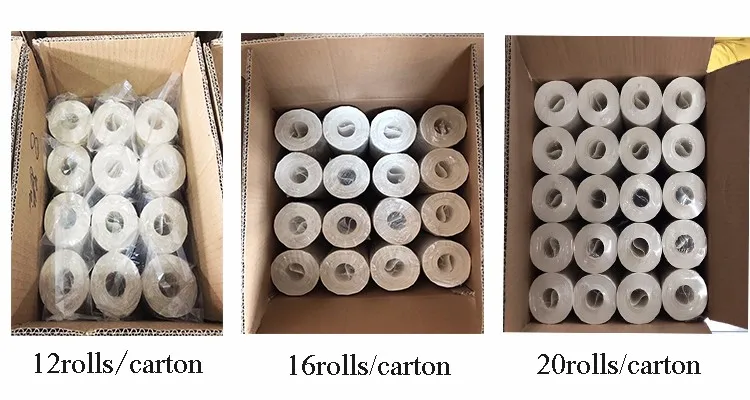 Each roll with label in one plastic bag, 12 or 16 or 20 rolls to one carton, also have 106 size, collections, container loading.