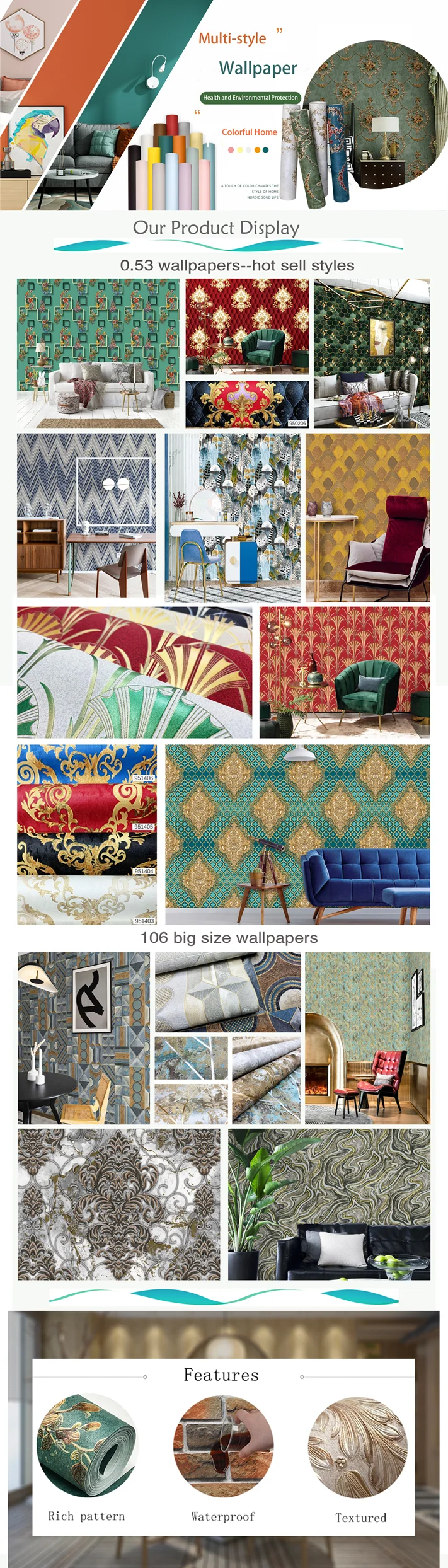 2) We keep 80 % stock lot new design wallpaper, which enable us to delivery goods in time