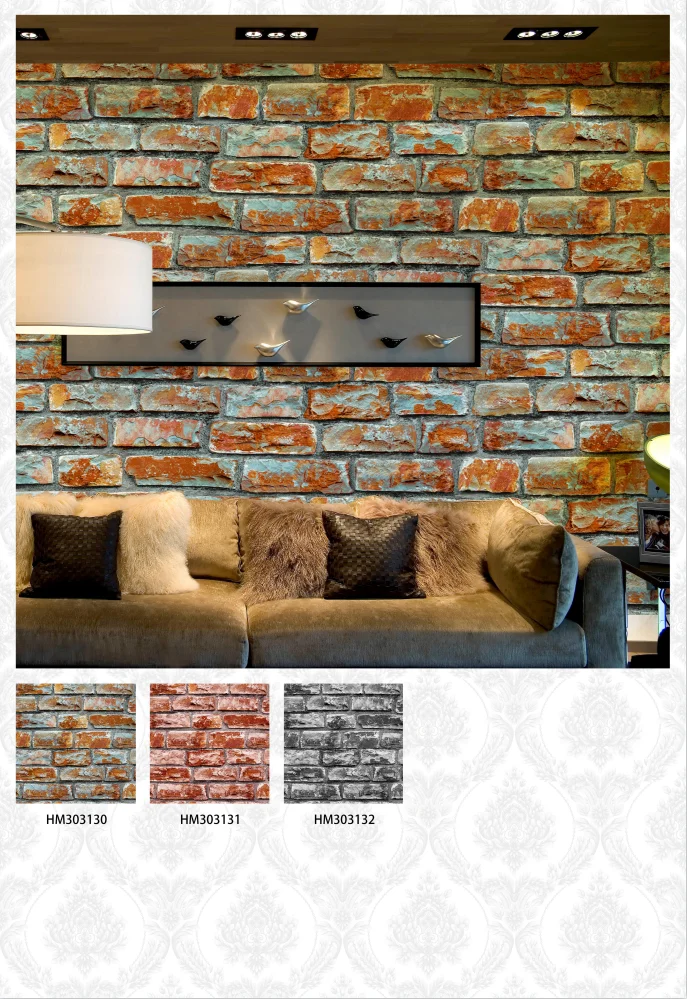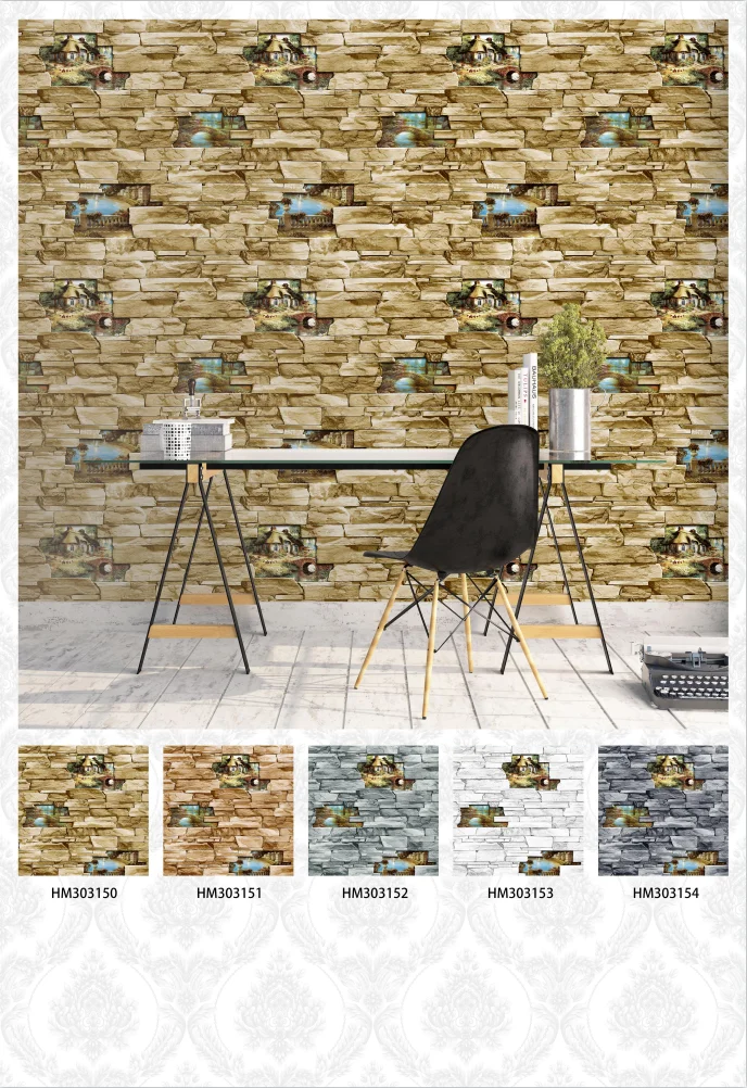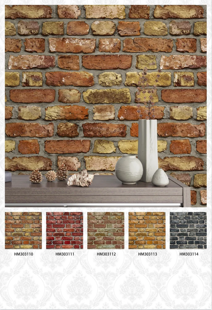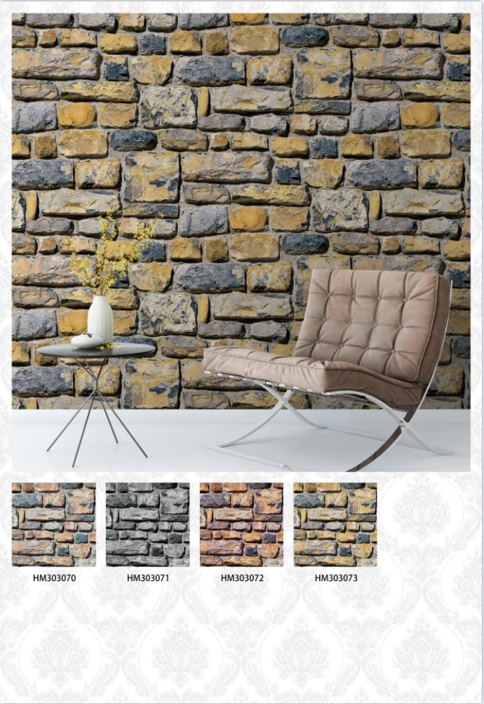 China new designs 3d brick Wallpaper home. cheap pvc bedroom stone wallpaper rolls