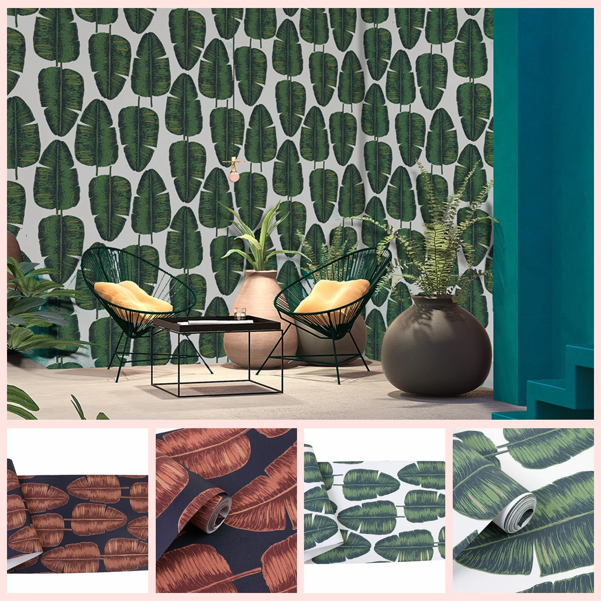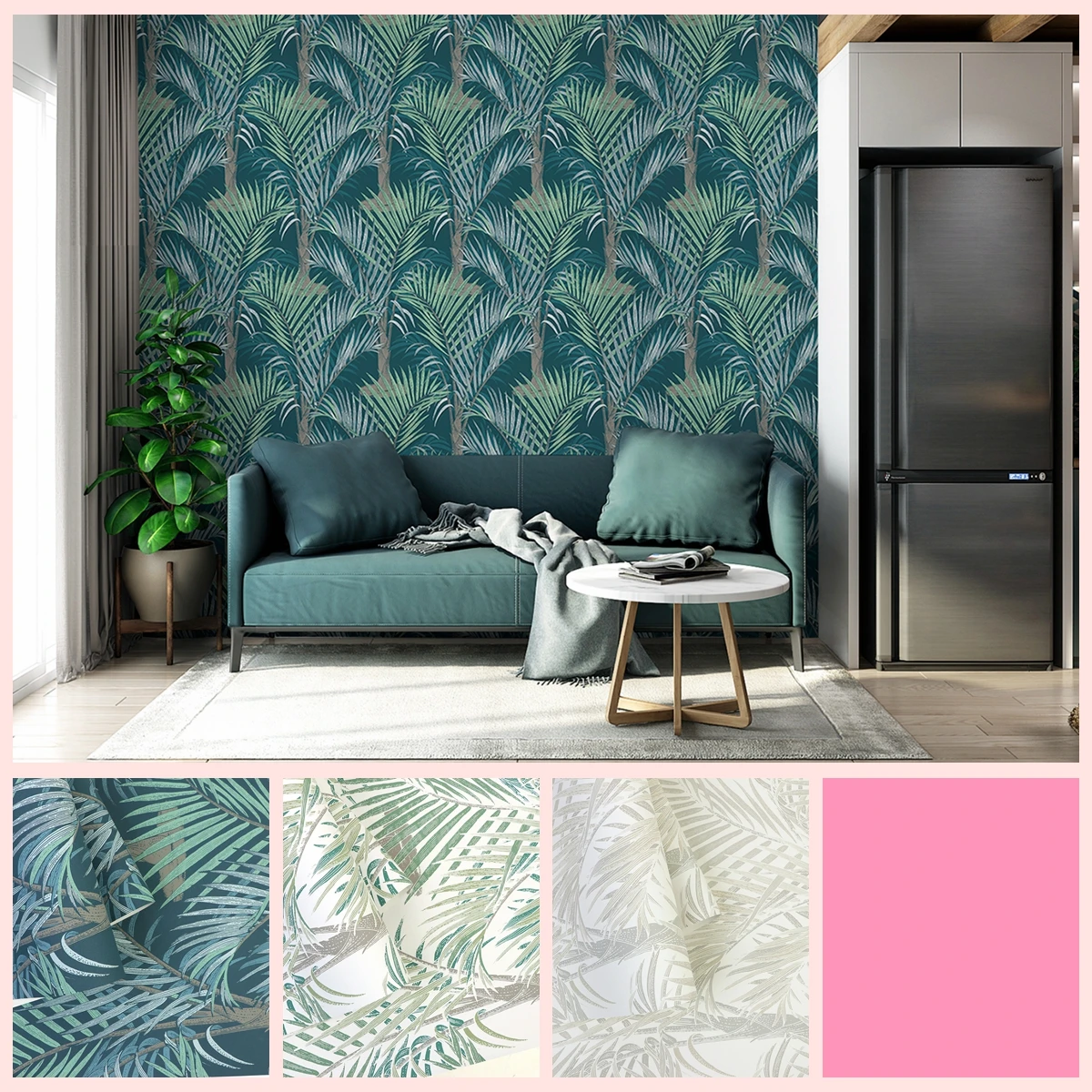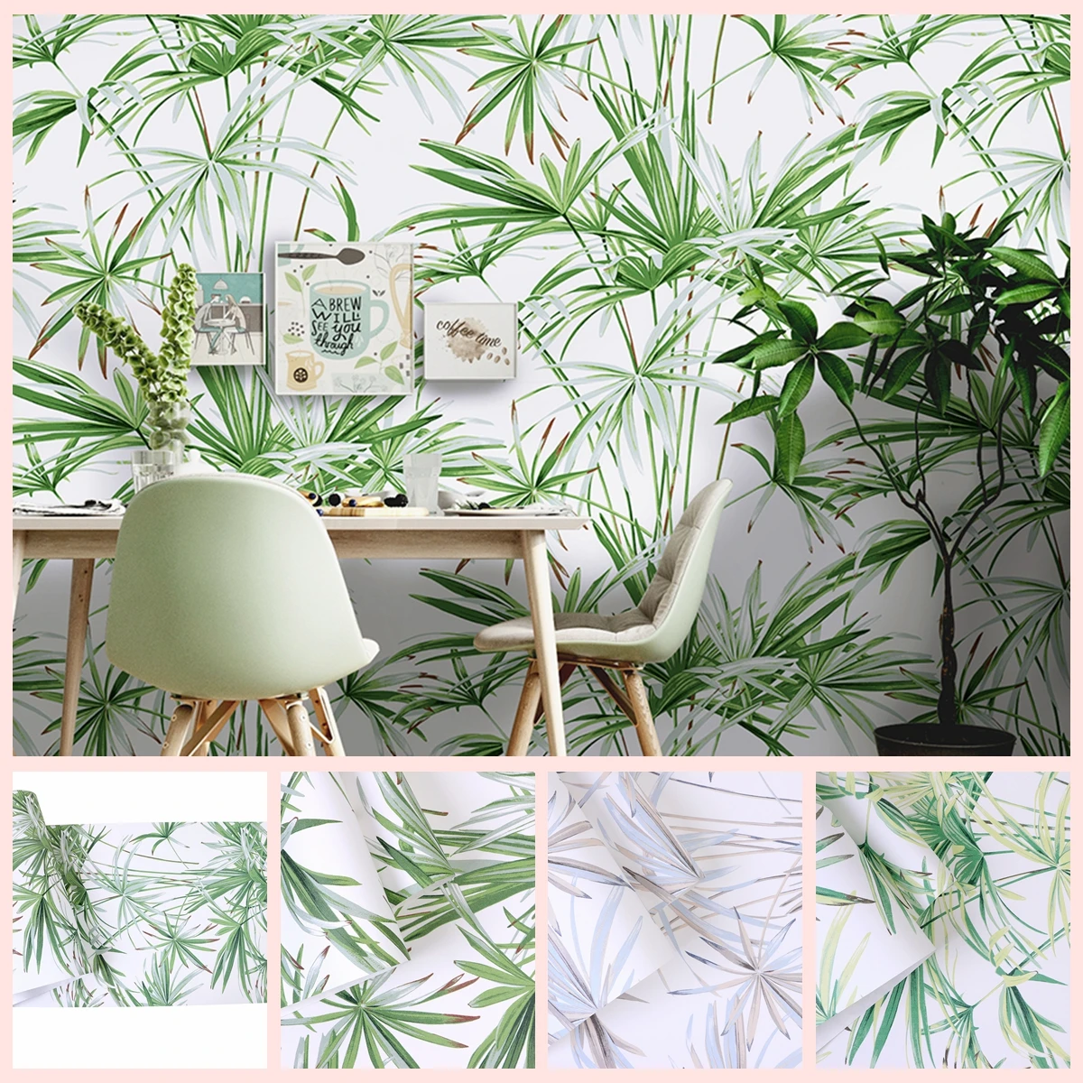 Modern Floral Design 3D Universal PVC Wallcovering Green Colour Waterproof Paper Wallpaper for Living Room Walls