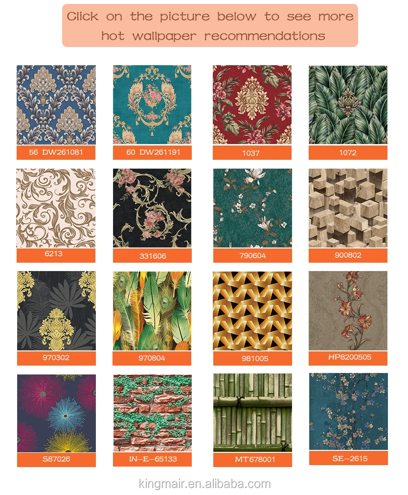 2) We keep 80 % stock lot new design wallpaper, which enable us to delivery goods in time