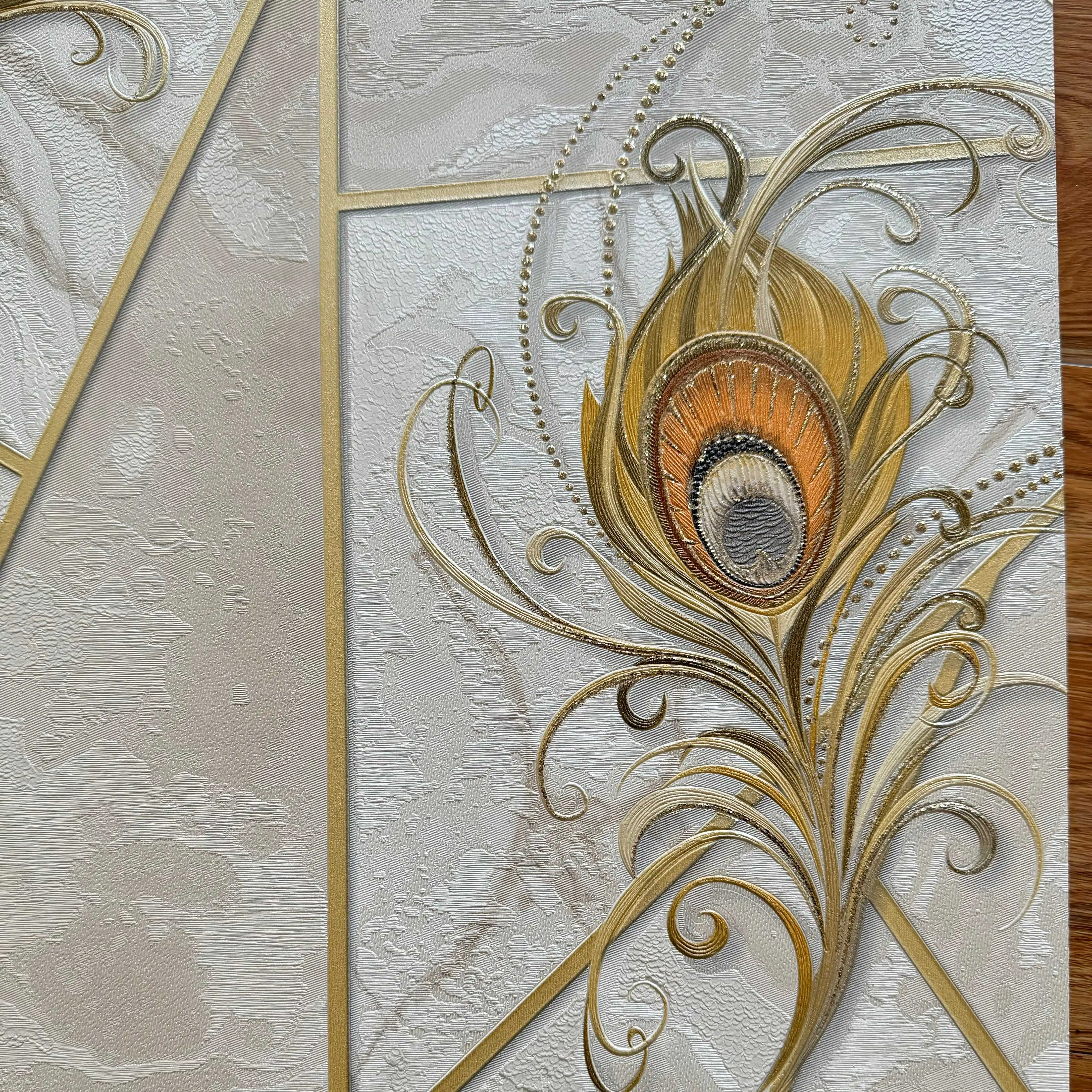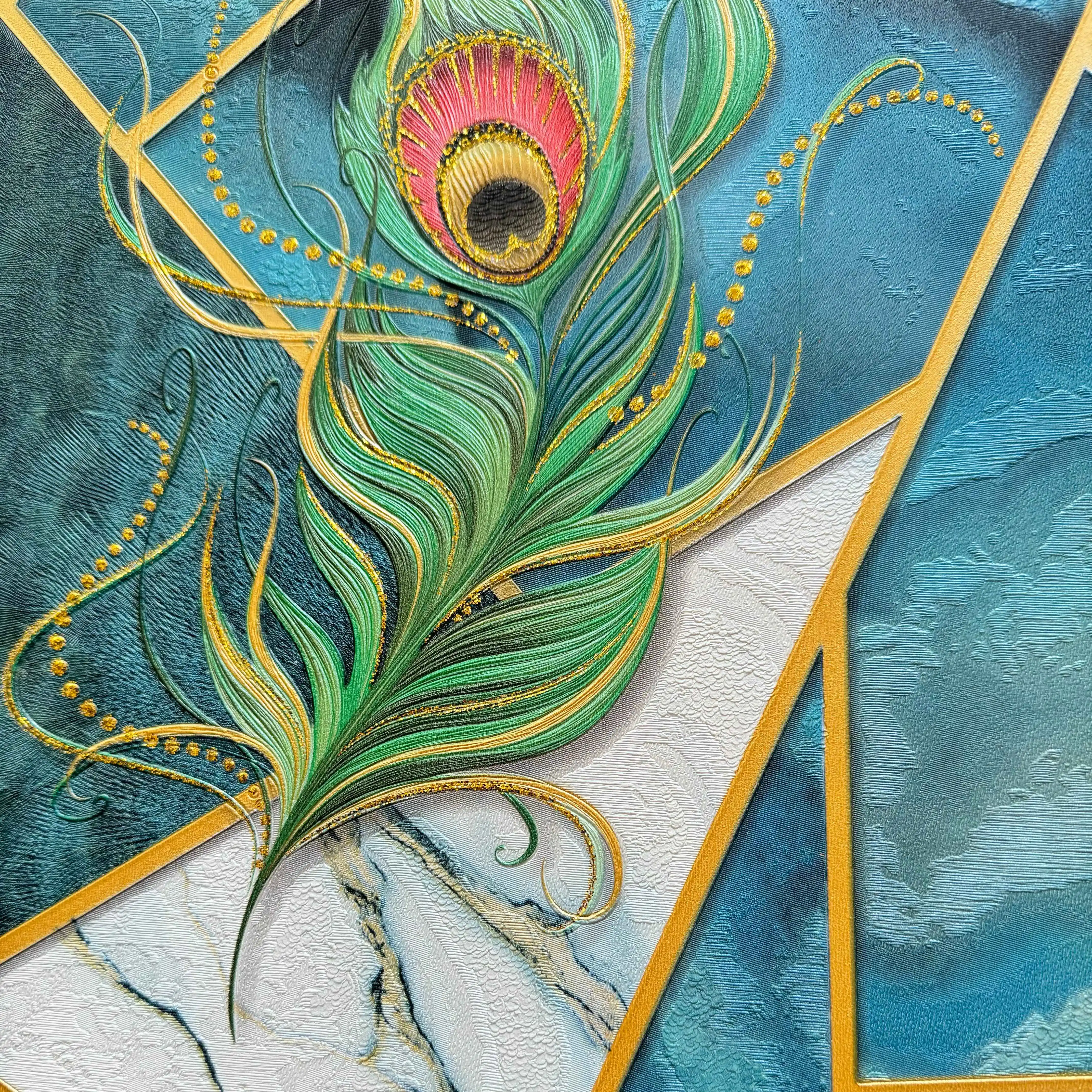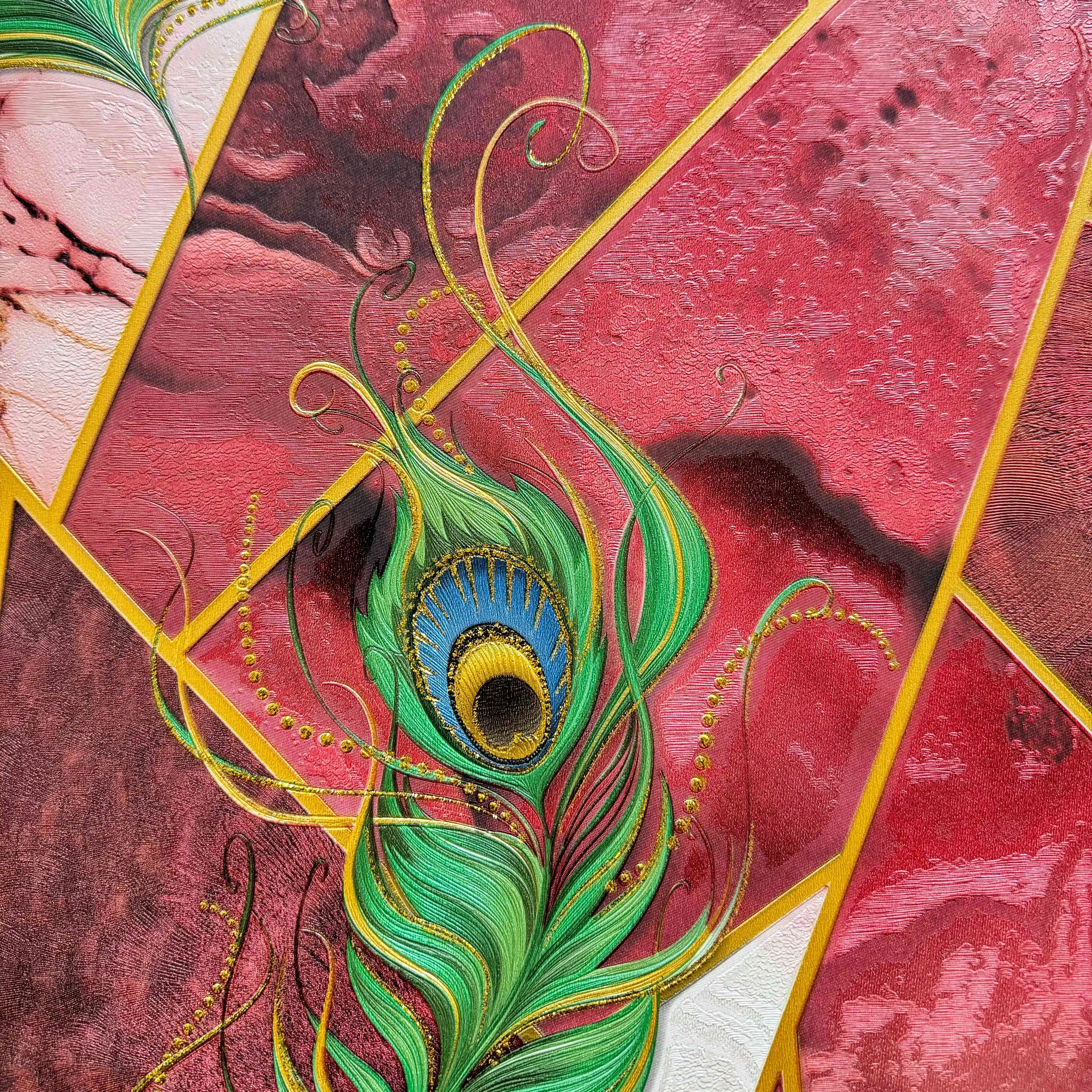 Modern Peacock Feather PVC Wallpaper Unique Geometric Pattern Colorful Luxury Waterproof Moisture-Proof for Home Hotel Decor