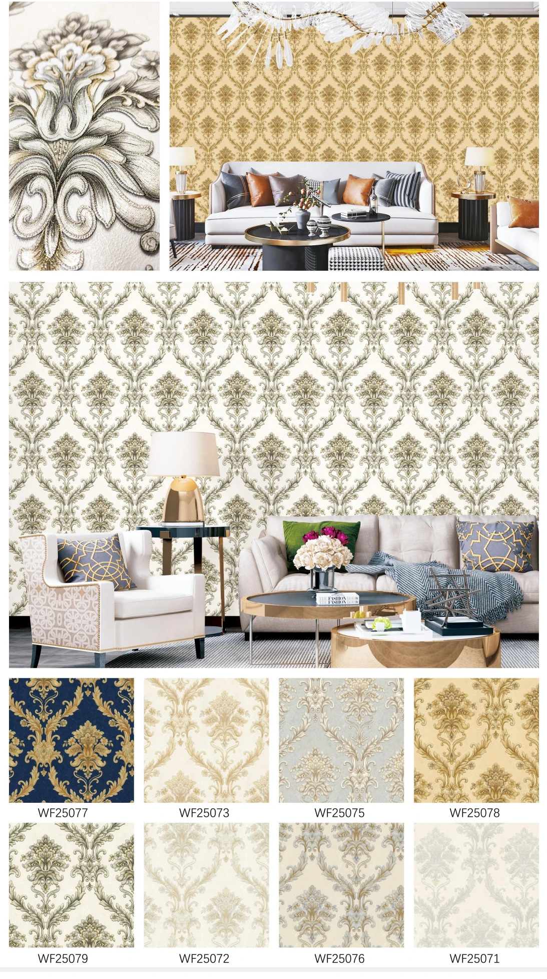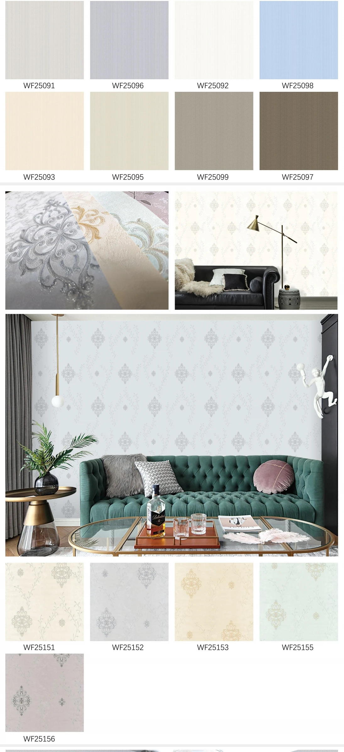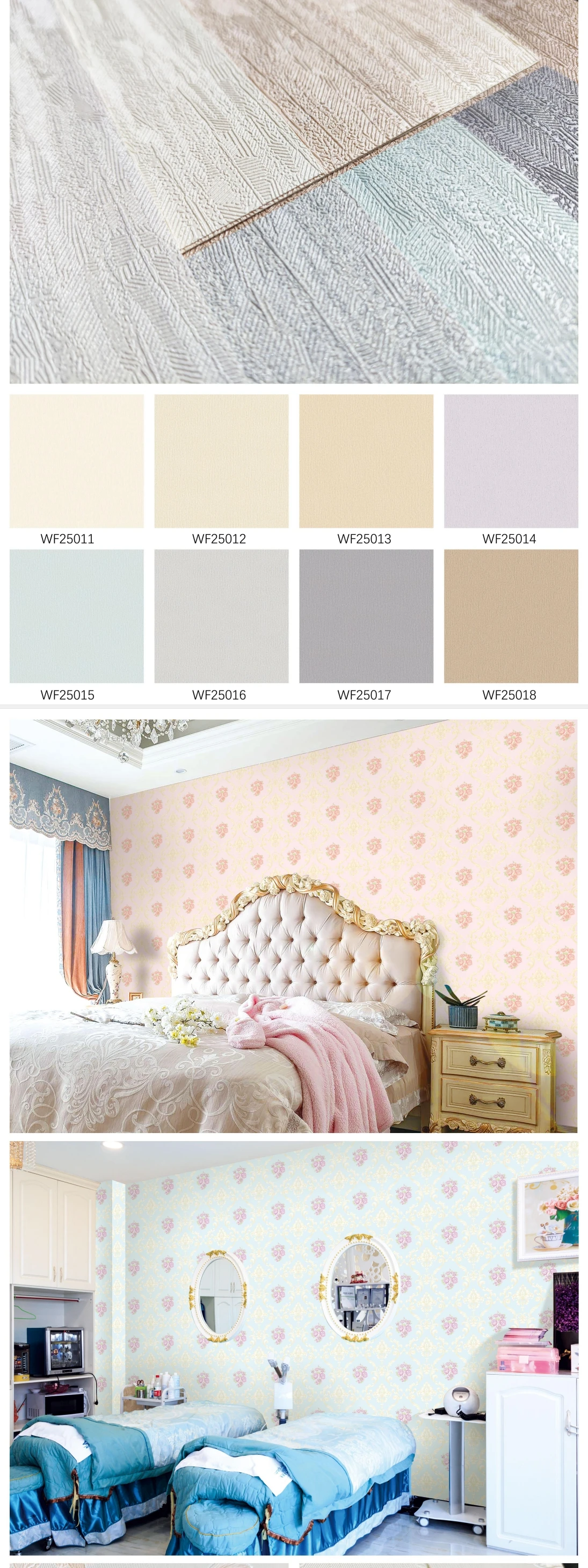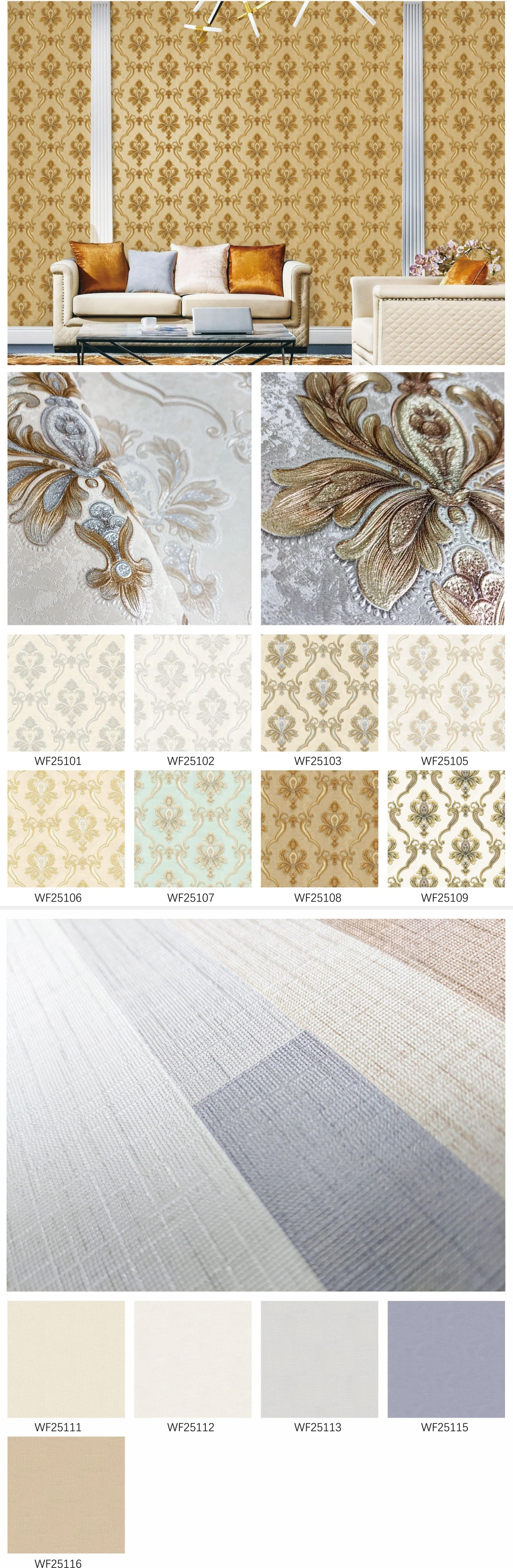 2) We keep 80 % stock lot new design wallpaper, which enable us to delivery goods in time